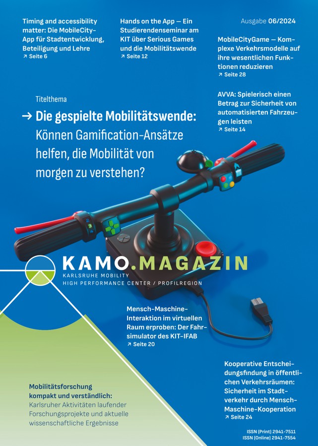 Mit unserer Veröffentlichungsreihe »KAMO.Magazin« wollen wir Sie in regelmäßigen Abständen über wesentliche Entwicklungen und Trends aus Forschungsprojekten, Angeboten und Entwicklungen der Branche aus Karlsruhe informieren. Wie überall in der Mobilität ist auch unsere Entwicklung ein stetiger Prozess. Wir möchten mit den Neuerungen, die wir hiermit anstoßen, die bewährte Zusammenarbeit mit unseren Partnern intensivieren, und die Tür zu neuen Kooperationsthemen öffnen.