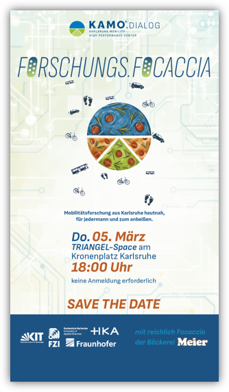 Ofenfrische Forschung 3. Forschungs.Focaccia am Do 05.03.2025 ab 18:00 Uhr Was kommt eigentlich bei Mobilitätsforschung in Karlsruhe praktisch heraus? Diese Frage soll unsere Veranstaltungsreihe #Forschungs.Focaccia beantworten. An mehreren Terminen wochentags abends stellen [...]