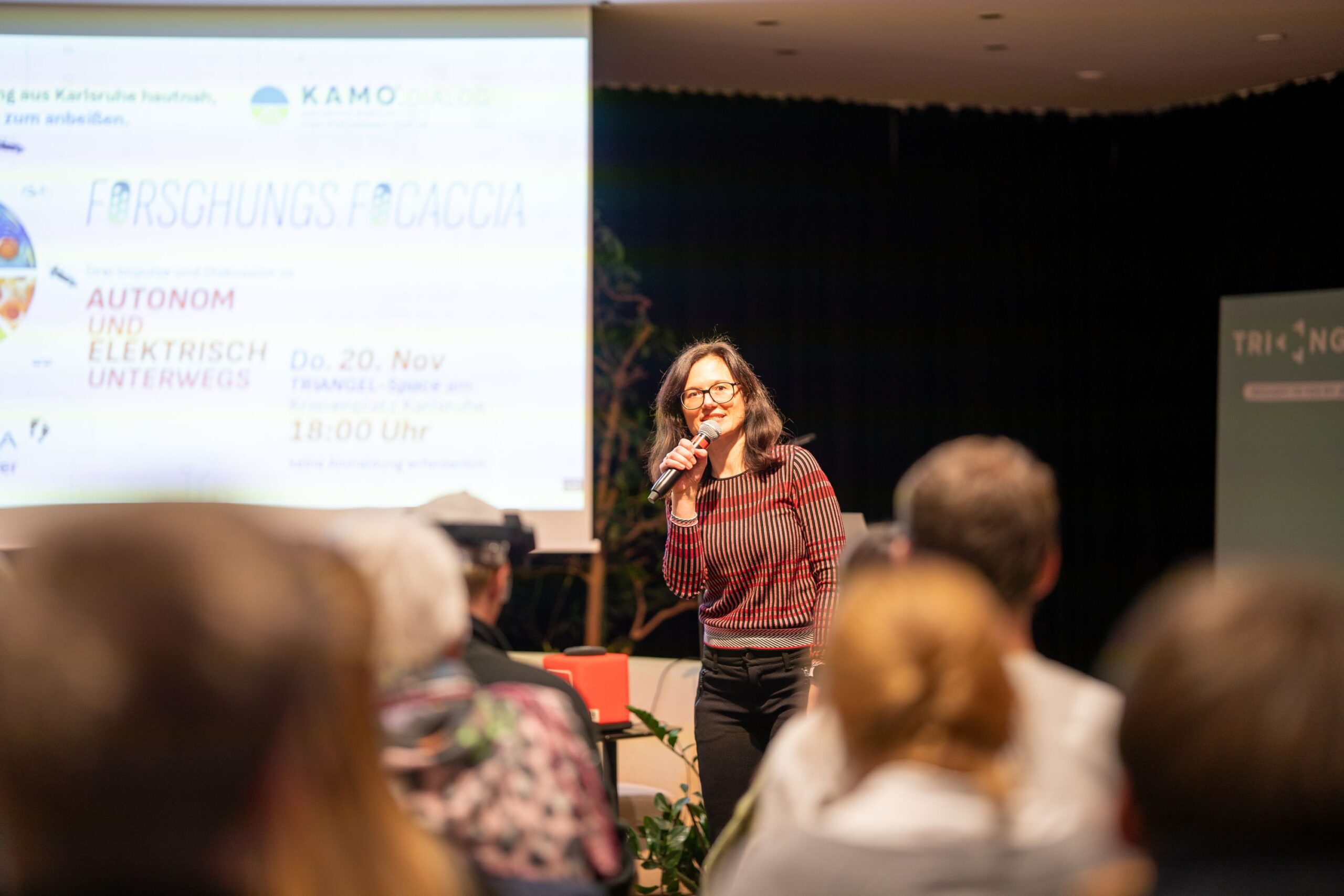 Die zweite Ausgabe der Veranstaltungsreihe Forschungs.Foccacia des KAMO Leistungszentrums im TRIANGEL-Space knüpfte nahtlos an den schönen Abend des Auftakts an. Am Donnerstag, den 20. November, ab 18:00 Uhr, versammelten sich ein bunt gemischtes Publikum, um unter dem Leitthema »autonom und elektrisch Unterwegs« tief in die aktuellen Entwicklungen der Mobilitätsforschung einzutauchen.